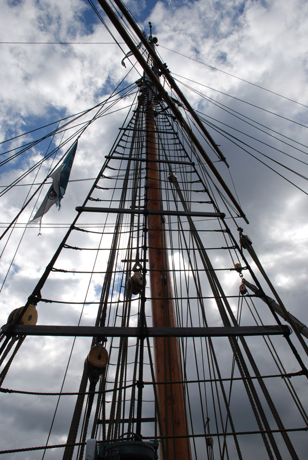 Takelage eines Schiffes im Hafen von Kopenhagen (Dänemark)
