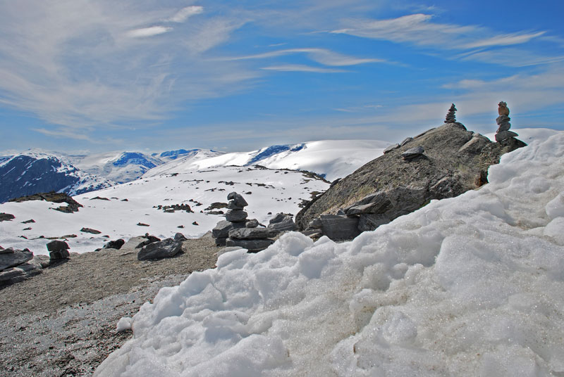 Schnee oberhalb des Geirangerfjords in Norwegen