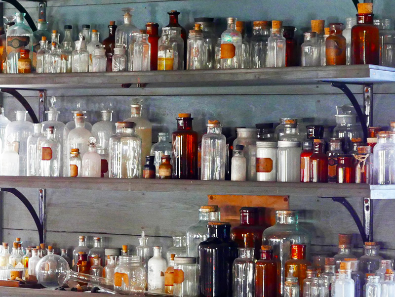 Chemikalien-Flaschen im Laboratorium von Thomas Alva Edison in dessen Winterresidenz in Fort Myers (Florida)