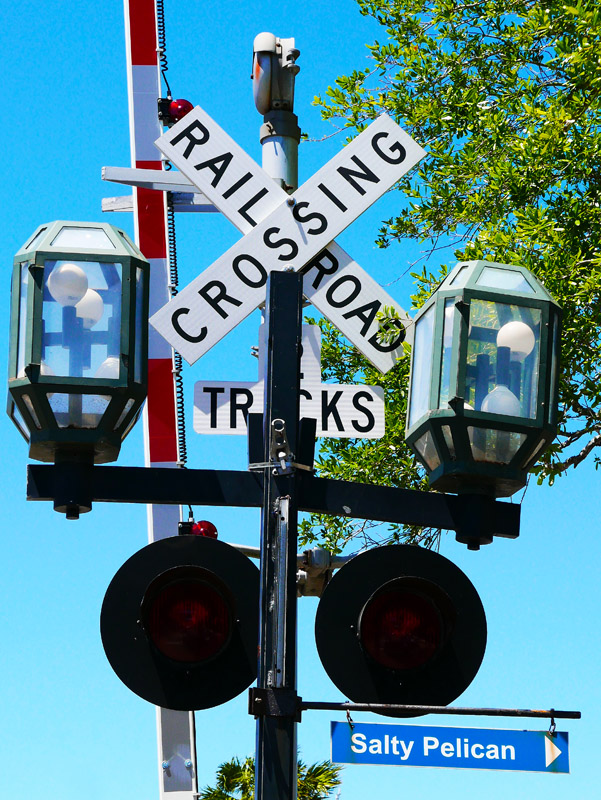 Signalschild einer Eisenbahnkreuzung in Amelia Island (Florida)