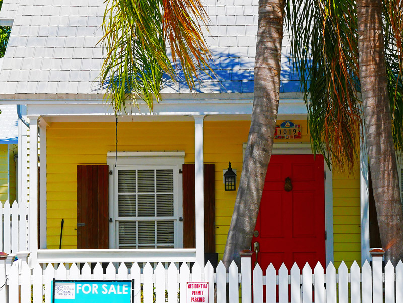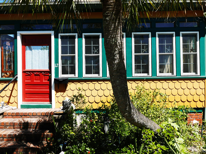 Farbenfrohe Vorderseite eines Hauses in Key West (Florida)
