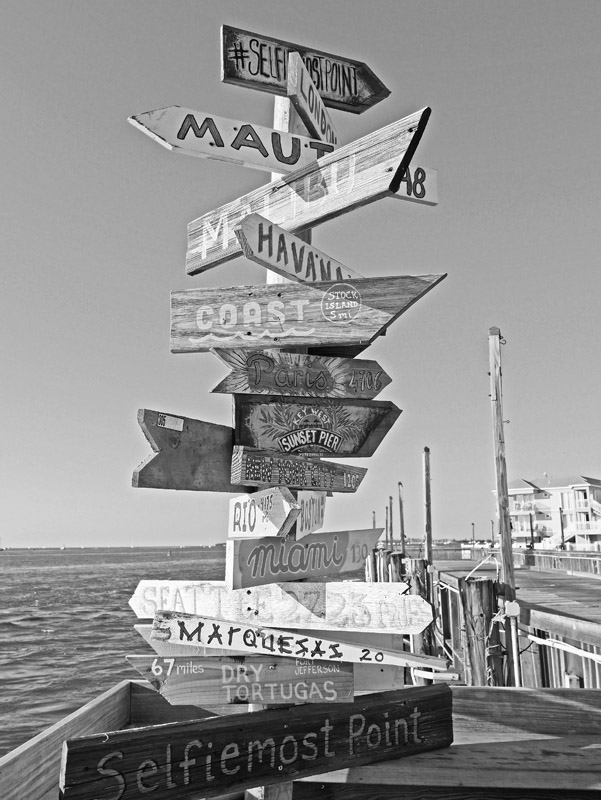 Richtungsschilder am Mallory Square in Key West (Florida)
