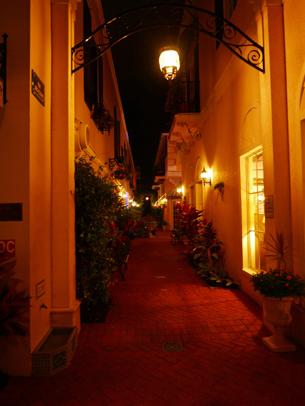 Beleuchte Seitenstraße auf der 5th Avenue in Naples (Florida)